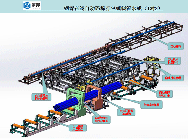 • 鋼管自動碼垛打包流水線(鋼帶)